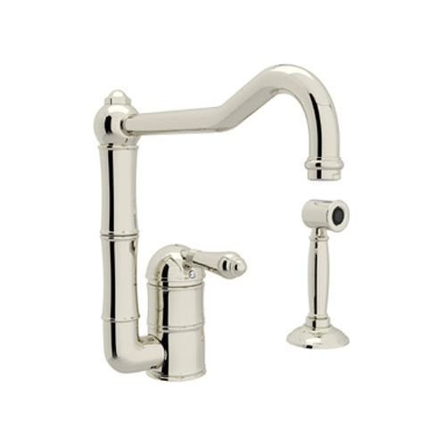Rohl A3608LMWSPN-2 Country Kitchen Single Hole Faucet with Single Metal Lever Sidespray and Column Spout, Polished Nickel