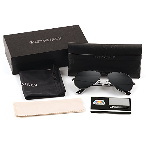 -. Binding : Misc. -. Brand : GREY JACK -. Department : mens -. Feature : GREY JACK premium military style classic aviator sunglasses,lightweight design is ideal for driving & all out door activities. / POLARIZED AND 100% UV PROTECTION - 100% Protection against harmful UVA/UVB rays. UVA and UVB ultra violet blocking lenses with added polarization for eliminating glare while maintaining color integrity. High-definition lens gives you a natural & clear vision;Durable & Shatterproof. / HIGH QUALITY METAL ANTIOXIDANT PLATING FRAME - Metal alloy frame with sturdy legs that are ultra-lightweight yet strong and durable.; Antioxidant plating,anti-allergy & skin-friendly tested,harmless to skin; It comes with adjustable silicon nose pads which allows for maximum comfort. / PRODUCT DIMENSION - Two sizes are provided to fit different facial shapes.Large Lens width:62mm (2.44") | Lens height:48.50mm (1.92") | Bridge width:14mm (0.55") | Frame width:141mm (5.56") | Leg length:138mm (5.43"); Medium Lens width:58mm (2.28") | Lens height:47.50mm (1.87") | Bridge width:14mm (0.55") | Frame width:139mm (5.49") | Leg length:140mm (5.51"). / 30 DAYS MONEY BACK GUARANTEE - All GREY JACK customers enjoy 30 Day Money Back Guarantee.Customers can return and get refunded in case the purchasing is not satisfied for any reason. You have no risk to try. -. IsAutographed : 0 -. IsMemorabilia : 0 -. Label : GREY JACK -. Manufacturer : GREY JACK -. Model : S110102 -. ProductGroup : Sports -. ProductTypeName : SPORTING_GOODS -. Publisher : GREY JACK -. Studio : GREY JACK -. Title : GREY JACK Polarized Classic Aviator Sunglasses Military Style for Men Women