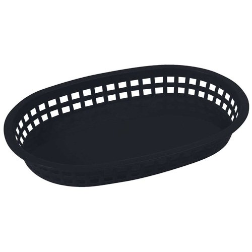 Studio : Winco Publisher : Winco Product Description Winco PLB-K, 10-3/4" x 7-1/4" x 1-1/2" Black Premium Oval Bread and Fruit Basket Platter, Tabletop Serving Display Snacks Baskets, 1 Dozen Pack is a beautiful and useful addition to any home or commercial tabletop. This set of 12 functional baskets come in classic black color, adding a sophisticated accent to your table. Made of high quality BPA-free plastic, the items feature a convenient oval shape and durable construction built to last through multiple food services. Each basket measures 10.25 x 6.75 x 2 inches, providing enough space for different fast food, fruit or snacks. Perfect for hot dogs, burgers, French fries, ribs, seafood, chicken, and more. Use these baskets with deli sandwich wrap paper for an enhanced food presentation. 0