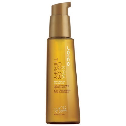 -. Binding : Health and Beauty -. Brand : Joico -. Department : womens -. EAN : 0798525631853 -. Feature : Conditions, strengthens and prevents color loss / Seals and nourishes the hair cuticle / Strengthens and protects hair -. IsAdultProduct : 0 -. Label : Joico -. LegalDisclaimer : Please be aware that unless expressly indicated otherwise, product packaging may vary from what is shown on this listing. We recommend that you do not rely solely on the information presented on our listing. Please always read the labels, warning and directions provided before using or consuming the product. -. Manufacturer : Joico -. Model : JOICO-476393 -. MPN : JOICO-476393 -. NumberOfItems : 1 -. PackageQuantity : 1 -. PartNumber : JOICO-476393 -. ProductGroup : Beauty -. ProductTypeName : BEAUTY -. PublicationDate : 2013-01-17 -. Publisher : Joico -. Size : 3.4 oz. -. SKU : joico077 -. Studio : Joico -. Title : Joico K-Pak Color Therapy Restorative Styling Oil, 3.4 Fluid Ounce -. UPC : 785525948173