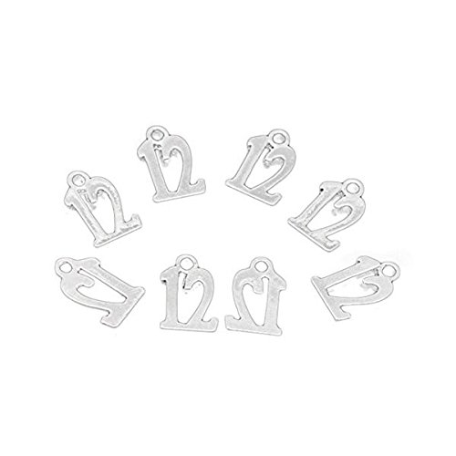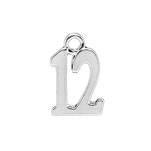 Housweety 50 Silver Plated Number Age "12" Charm Pendants 15x10mm(5/8"x3/8")