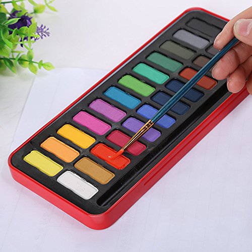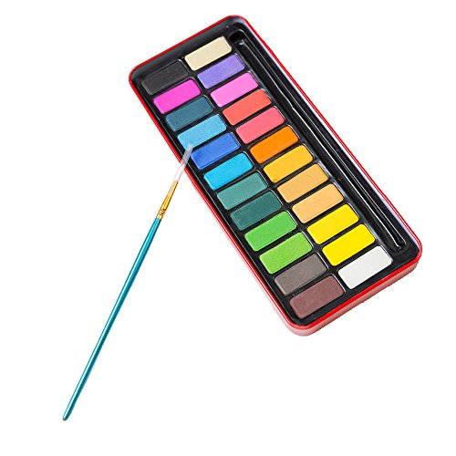 Nuoneko 24 watercolor palette -travel watercolor set- 24 vibrant colors-Perfect for budding hobbyists and artists