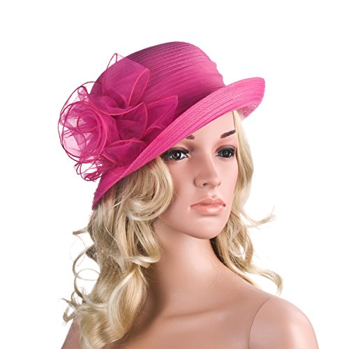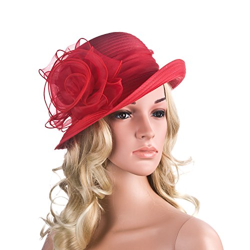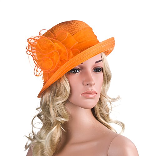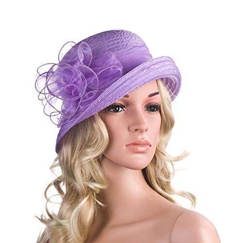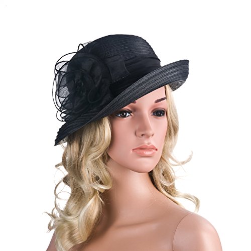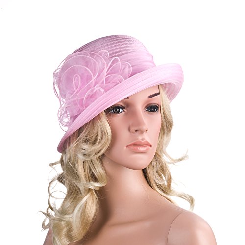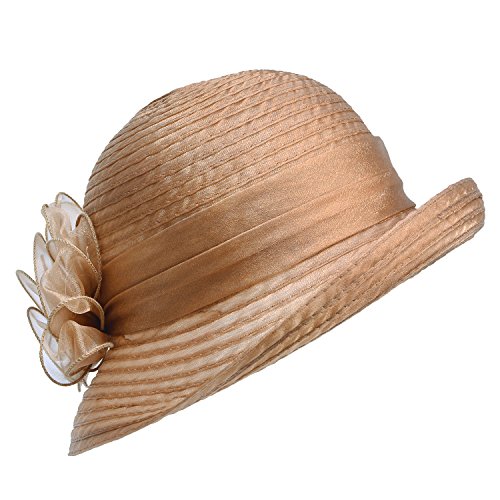 | Pure Color 1920s Womens Summer Organza Bowler Sun Hat Derby Tea Party A267 |