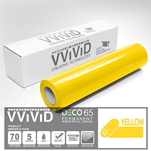 VViViD Yellow Gloss 11.8" x 84" (7ft) DECO65 Permanent Adhesive Craft Vinyl for Cricut, Silhouette & Cameo