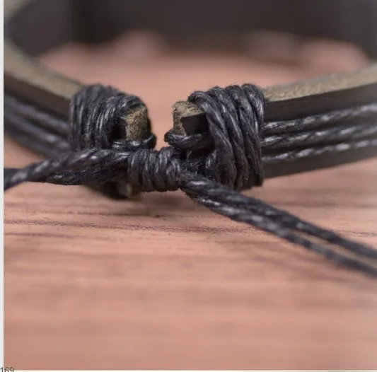 bracelets jewelry:black leather with black string