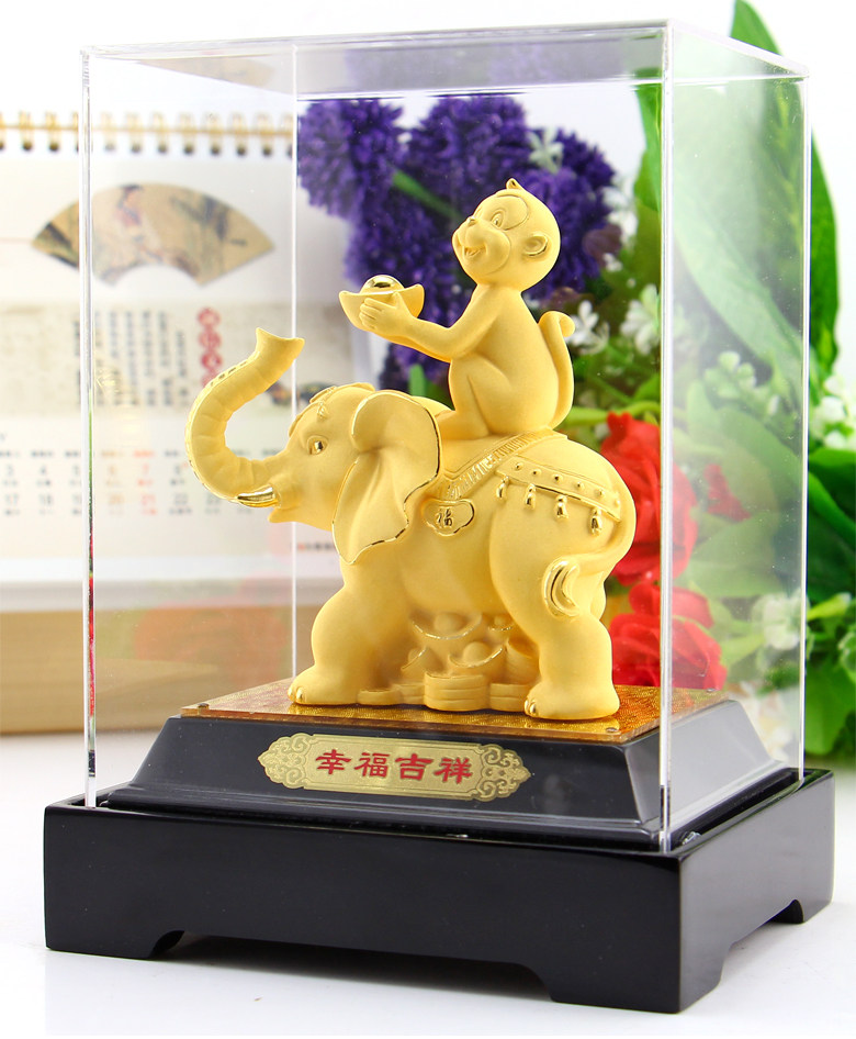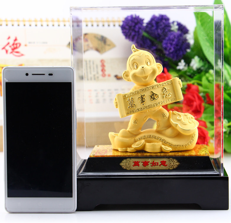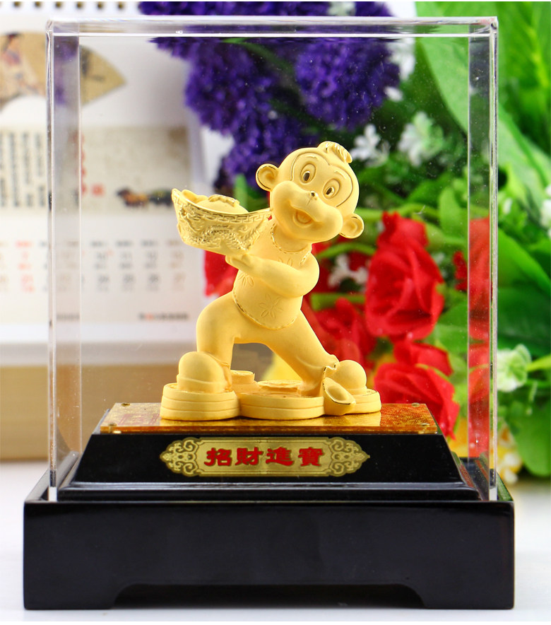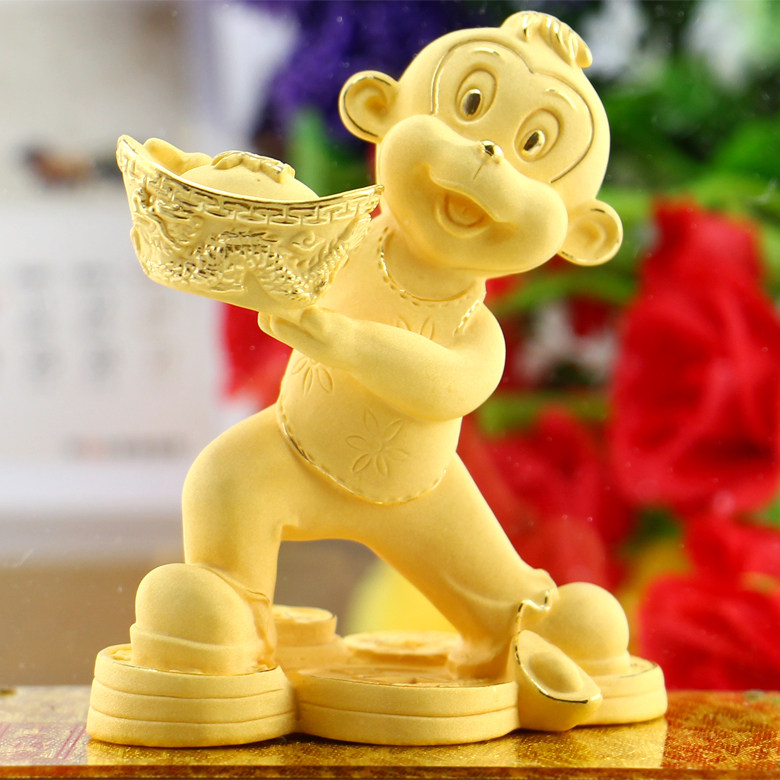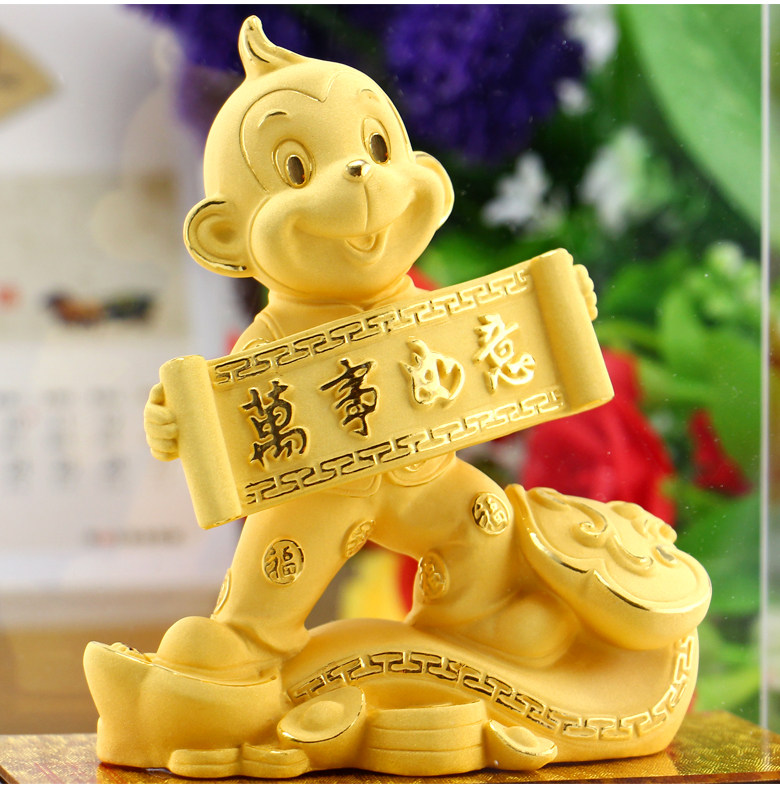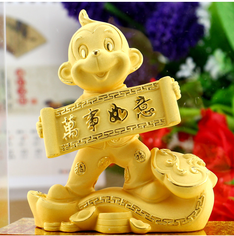 绒沙金猴年吉祥物生肖猴子摆件生日开业送礼招财家居装饰高档礼品