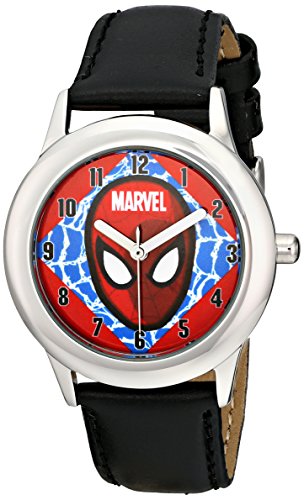 Round Stainless Steel Watch with Marvel's Spider-Man character on dial.