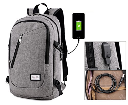 -. Feature : LAPTOP BACKPACK - 12.1"(L) x 21.3"(H) x 5.7"(D). Fits to 17 Inch Laptops Meets Your Needs of Day Round Trips with 20kg / 44lb Load Bearing. / 3 MAIN POCKETS - with 9 Inner Small Pockets and 2 Sealed Side Pockets - Provides a Separated Space for Laptop, Pen, Keys, Wallet, Books, Clothes, Bottle. / USEFUL FUNCTIONS - External Micro USB with Set-In Charging Cable is Convenient for Your Electronic Device's Use Anywhere. / INNOVATIVE DESIGN - Convenient Charging by Connected with The Portable Charger and Your Electronic Device, Such as Your Kindle and Android Devices. Headphone Jack, You Can Listen to Your Favorite Music on The go Hands-Free. / MADE FROM - Durable Eco-Friendly Nylon Fabric with Two Adjustable "S" Curve Padded Shoulder Straps, Offers Light-Weight Carrying and of Force Reinforcement for Ultra Comfort