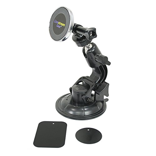 -. Title : Livestream Gear - Universal Magnetic Phone Mount and Suction Cup Mount for Glass/Windshield. Easily attach a Phone to Glass Surfaces via Magnetic Mount and Metallic Plates. Strong Hold.