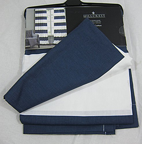 Hillcrest Wide Stripes Curtains 2 Panels 52 x 96" Modern Window Drapes Cotton 2 Panels Hidden Tabs Navy Blue White