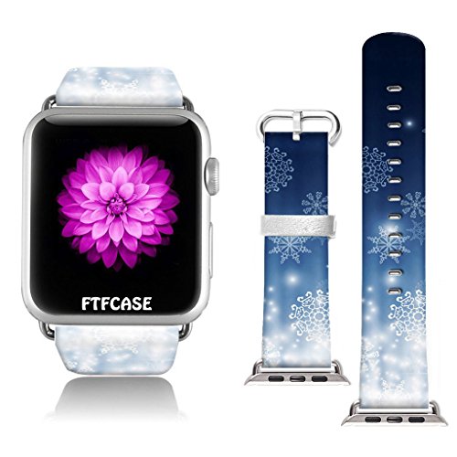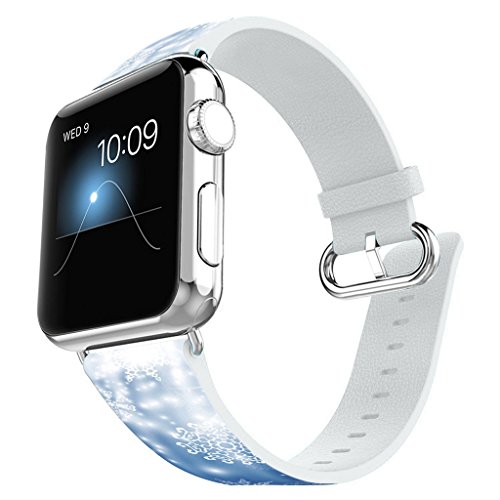 Apple Watch Band 42MM 100% Leather + Stainless Steel Connector iWatch Bands for Apple Watch 42mm - Snowflake pattern