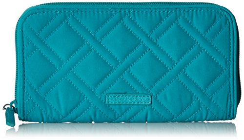 PERFECTLY SIZED: Our Vera Vera RFID Georgia Wallet measures 7.5 x 4.25 inches with 8 card slots, zippered coin pocket, ID window, bill pocket, and room for your passport
