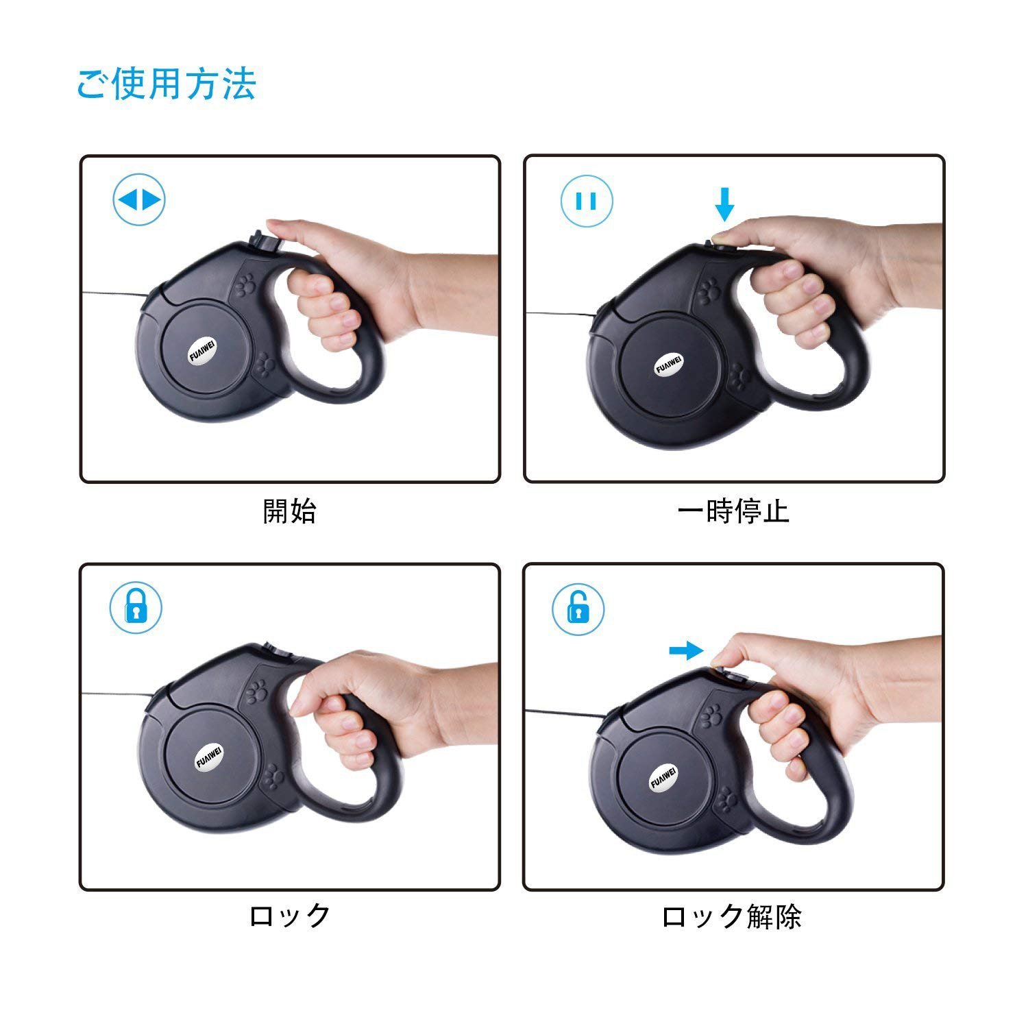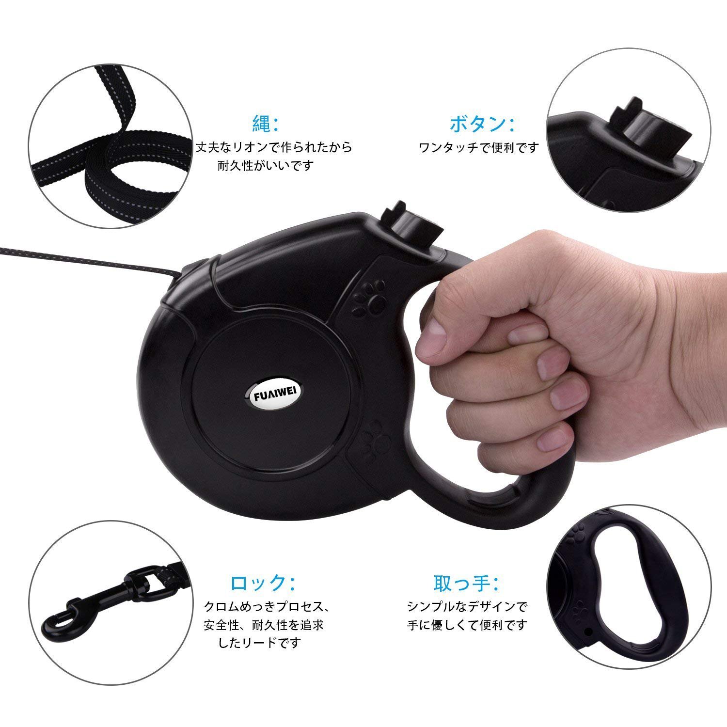 【人間工学に基づいたデザイン】エルゴノミクス・デザインのハンドルは、手にフィットし滑りにくく、快適な握り心地!ワンタッチ操作で簡単に距離を調整でき、片手でブレーキが掛けられ、また放出させたり巻き戻しも出来ますので、操作簡単です。信頼できるロックシステムはリードの瞬間的な収縮の際に完全な制御を提供します。リードを止める時、単にブレーキボタンを親指で押せばいいです。