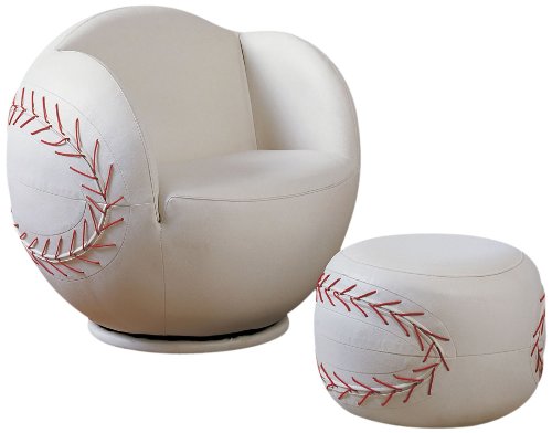 - All star collection 2-piece chair and ottoman set features a white finish with a baseball theme