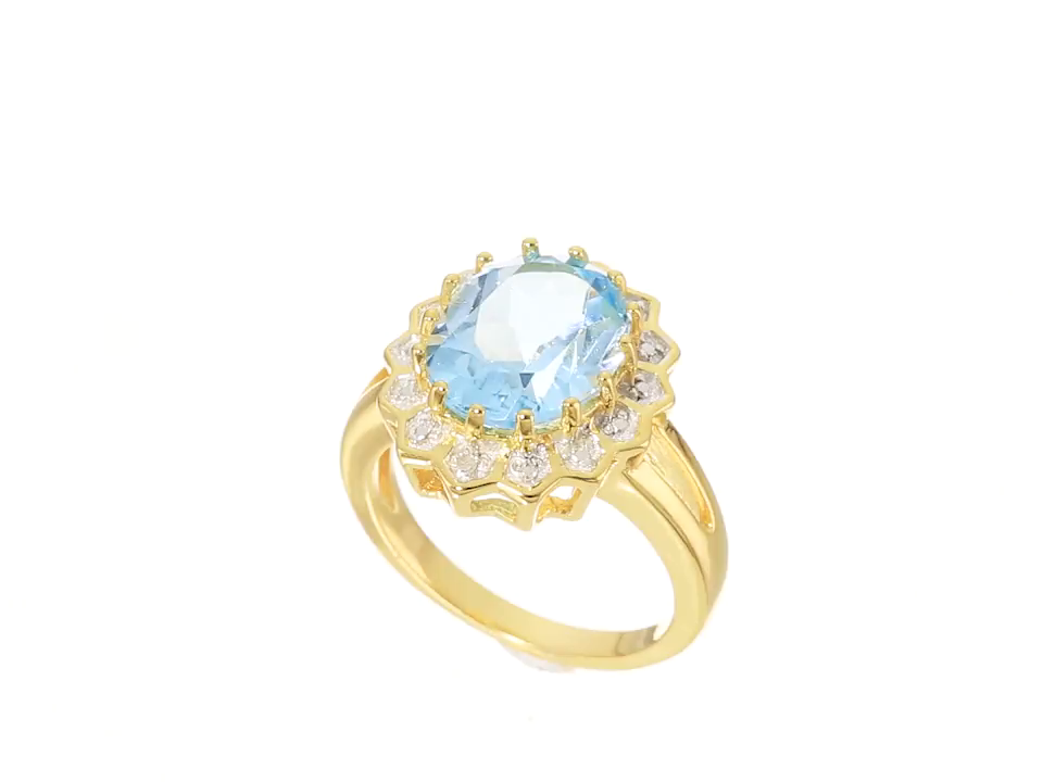 18k Gold Rhodium Plated Sterling Silver Two-Tone Oval Sky Blue Topaz Ring, Size 7