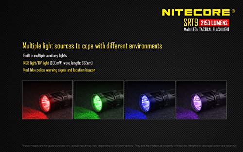 - MULTI-FUNCTION COLOR LEDS - Red, blue, green and UV secondary LEDs make the SRT9 even more useful whether you're tracking blood with the blue LED, verifying currency with UV fluroesence or using the green and red to keep a low profile while hunting.