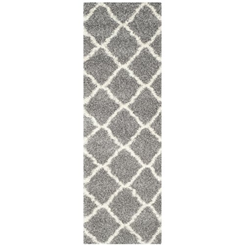 This Safavieh Montreal shag’s design is a modern approach to the Moroccan quatrefoil style in neutral colors of grey and ivory. Crafted from a blend of polyester and polypropylene, this rug is both a visual and tangible delight. This rug’s versatile neutral palette softens any room it is placed into, while simultaneously adding a touch of flair to amplify existing décor.