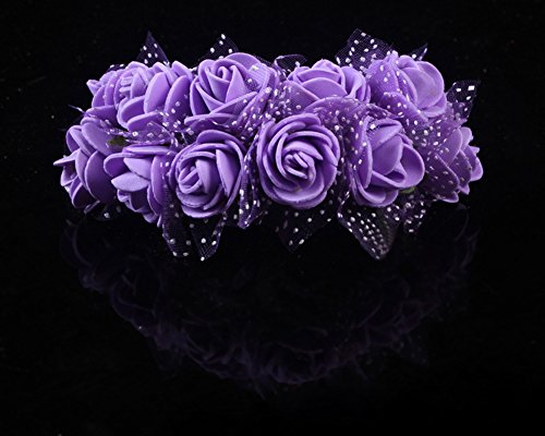 Sealike 144 Pcs Mini Artificial Rose Flower Wedding Bouquet Flower Bouquets Home Party Decor with Stylus Purple