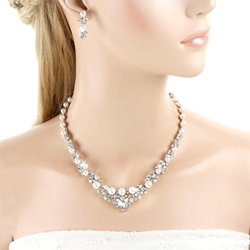 -. Binding : Jewelry -. Brand : EVER FAITH -. Department : womens -. Feature : [!]EVER FAITH is a US registered trademark and Ever Faith Jewelry(former name: Kiss Bling) is its only owner. We will pursue legal action against trademark infringement in case of UNAUTHORIZED sale or resale. / Main Color: clear, Ivory Color / Necklace Length: 41cm(16")-46.5cm(18.30"), Earring Size: 2.7CM(1") x 1CM(0.4"). One earring weight: 2g. / Wrapping: Come with some spare crystals, and a gift box or favor bag (depend on product size) -. Label : EVER FAITH -. Manufacturer : EVER FAITH -. ProductGroup : Jewelry -. ProductTypeName : FASHIONOTHER -. Publisher : EVER FAITH -. Studio : EVER FAITH -. Title : EVER FAITH Bridal Leaf Jewelry Set Clear Austrian Crystal Simulated Pearl