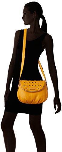 Cross-body bag in pebbled leather featuring grommets and perforation at fold-over flap