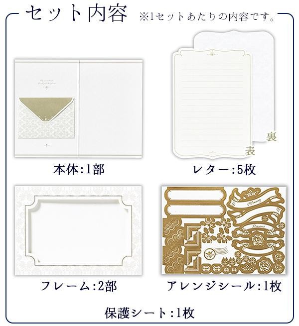 | セット内容 | 3セット ※1セットあたり/本体:1部、レター:5枚、アレンジシール:1枚、フレーム:2部、保護シート:1枚 |