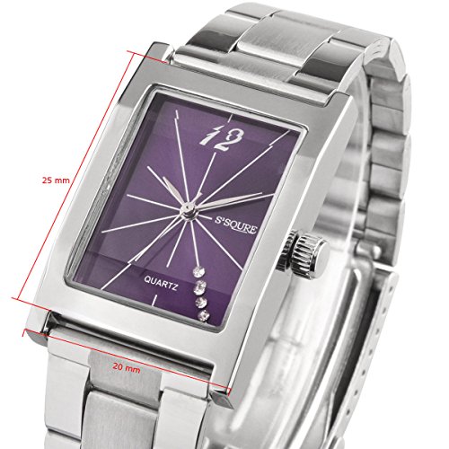 -. Title : Alienwork Ssqure Quartz Watch elegant Wristwatch stylish Metal blue silver QH-48175L-03