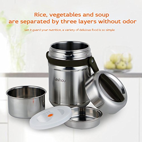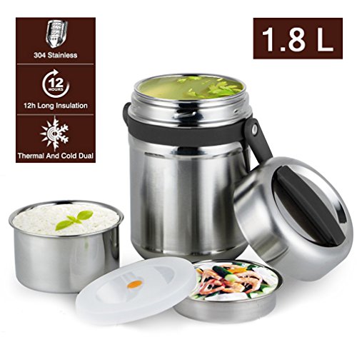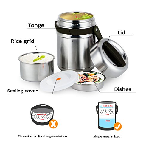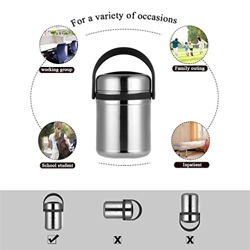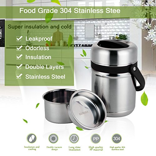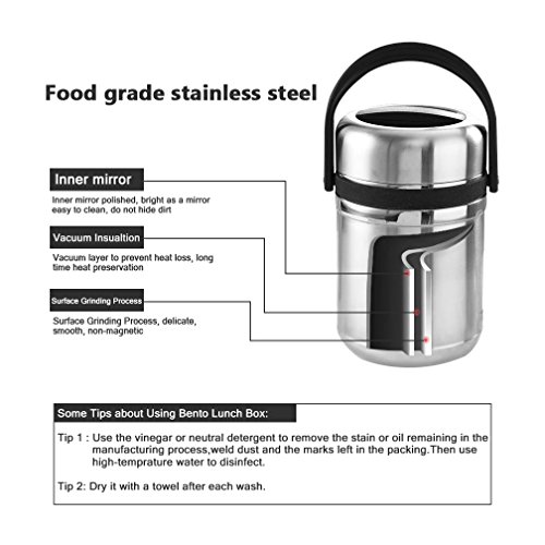🍷🍷WHY YOU CHOOSE VeMee Stainless Steel Thermal Insulated Lunch Jar🍷🍷UPGRATED DESIGN-We design the outside with 3 layers for premium insulationStainless Steel Bento box, has been Certified and tested in a lab as being food safe materials!which is high-density and can keep food warm ,separated and fresh, produce the best possible results of heat preservation, This will keep your food cold or hot for up to 12hours.They are super easy to wash and will not rust, corrode, or harbor mold. BPA free with no toxic chemicals or substances.