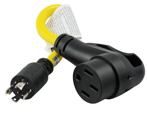 Conntek 15874 1.5-Feet, 30-Amp RV Generator Adapter for Model 4-Prong Locking Plug to RV 30-Amp Ergo Grip Connector with Power Indicator