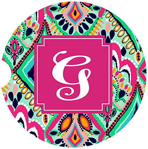 Monogrammed Car Coasters - Single Initial G - Absorbent Sandstone - Crown Jewels (SET of 2)
