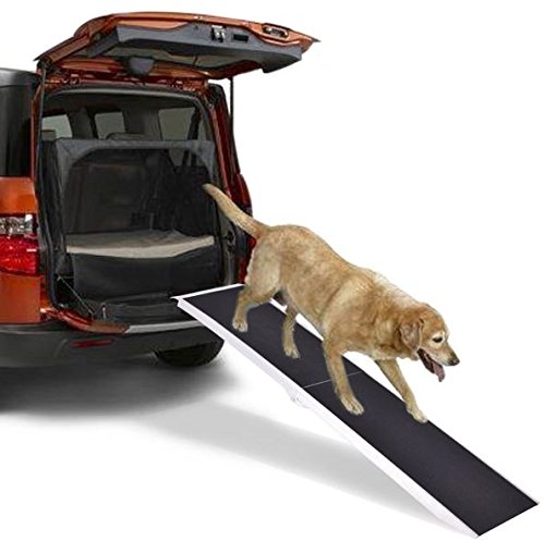 Studio : KA Company Publisher : KA Company Binding : Misc. Product Description This 7ft dog loading ramp gives your pets plenty of room to walk up and down, entering into and off a vehicle with ease. Portable and lightweight, the ramp is well fitted for minivans, cars and pickup trucks, the surface of which features a paw-friendly grip tape that could be used in most weather conditions. Besides, the ramp helps reduce strain on animal joints by eliminating the need to have to jump from an elevated surface. What's more, It's made from durable material which can support up to 250 lbs to keep your pet steady. The folding design helps save space when not using and allows for easy transportation.