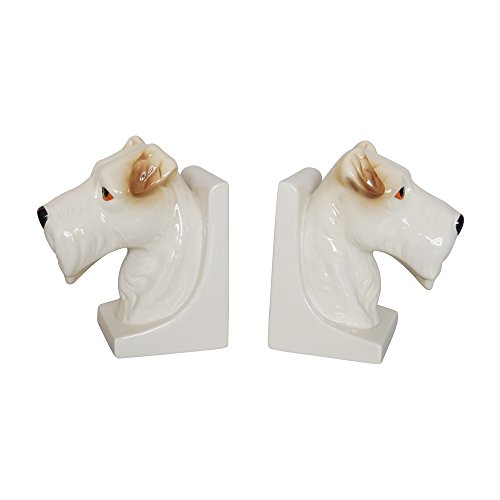 Comfy Hour 6" Length 7" Height Set Of 2 Dog Head Scottish Terrier Head Bookends Art Bookend, 1 Pair, Glazed Finish, Heavy Weight, White & Brown