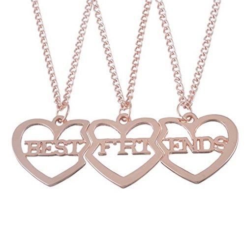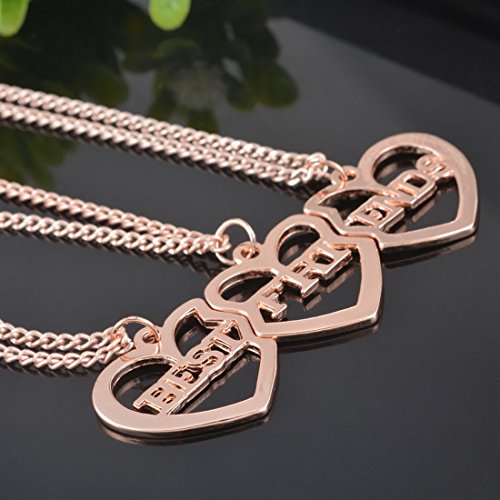 MJARTORIA MJartoria Damen Kette Rosagold Farbe Drei Herz Anhanger Freundschaftsketten mit Gravur Best Friends Forever BFF Halskette 3 Stuck