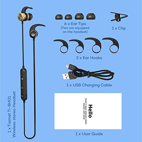 -. Title : Bluetooth Headphones, Tiamat Wireless 4.2 Magnetic Earbuds CVC 6.0 Noise Cancelling Stereo Earphones, IPX5 Splash Proof for Sports with Built in Mic, Long Lasting Working Time