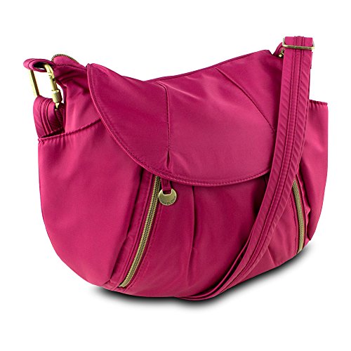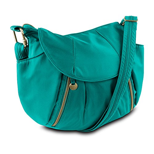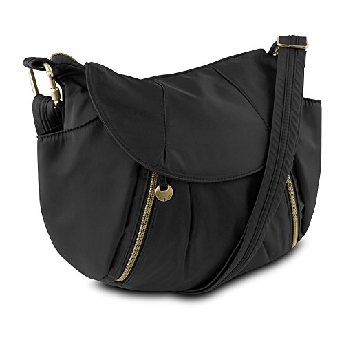 Keep all your personal belongings protected while you're on-the-go with the Travelon Anti-Theft Front Zip Hobo Bag with RFID Protection. This bag gives you all the protection you need while you're out and about. The bag is made with slash-proof body panels and slash-proof strap, and includes a locking main compartment so thieves can't easily reach in and steal your things. Plus, it includes tons of storage space for all your travel essentials including your passport, sunglasses, and more. The passport pocket and 5 built-in card slots even include RFID-blocking technology so thieves can't steal your personal information.Feature
