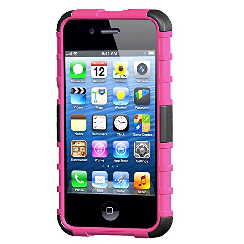 iPhone 4s Case,iPhone 4 Case,Armor Heavy Duty Protection Rugged Dual Layer Hybrid Shockproof Case Protective Cover for Apple iPhone 4 4S with Built-in Kickstand (Rose)