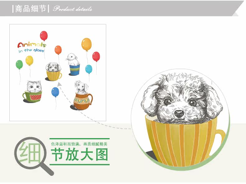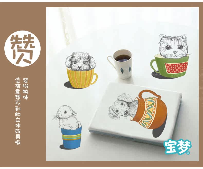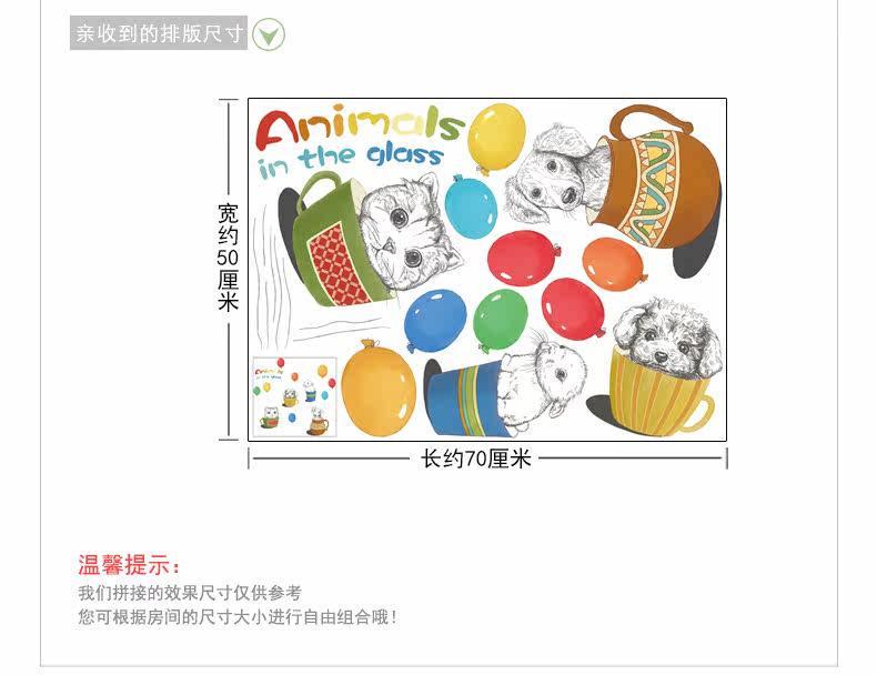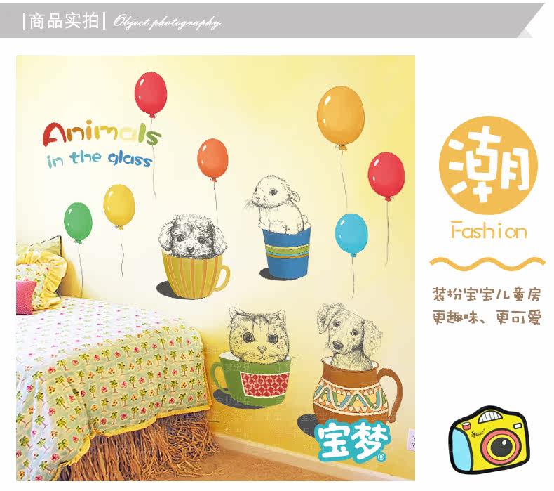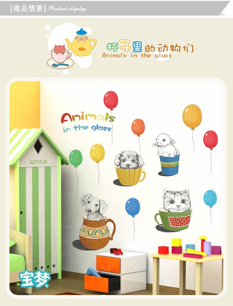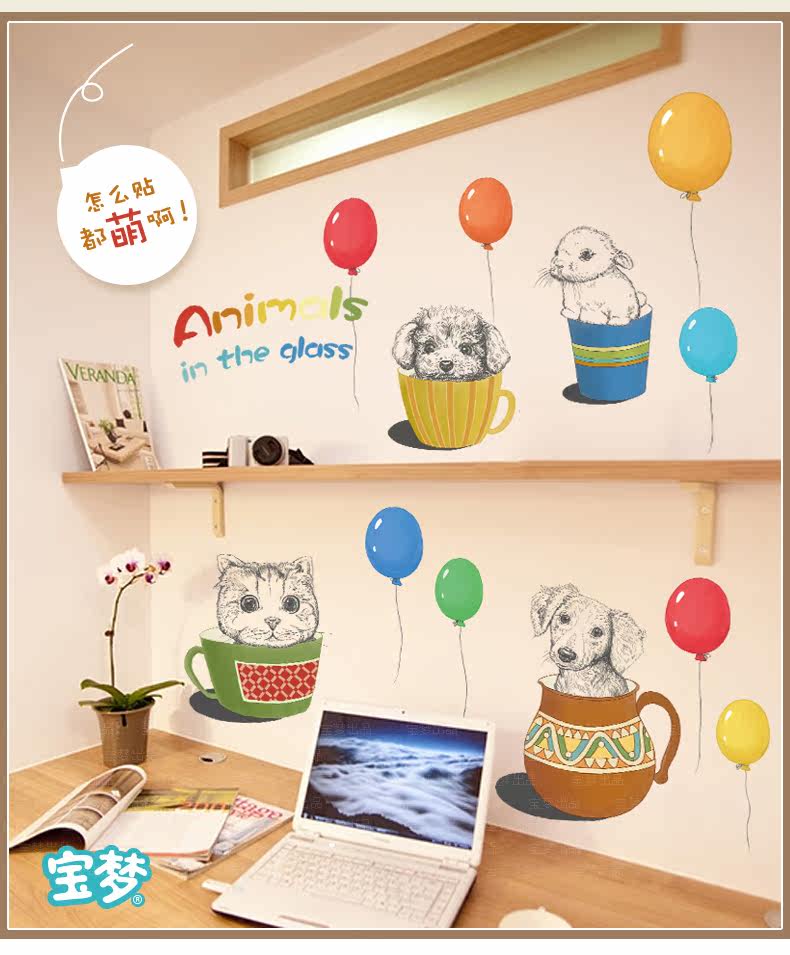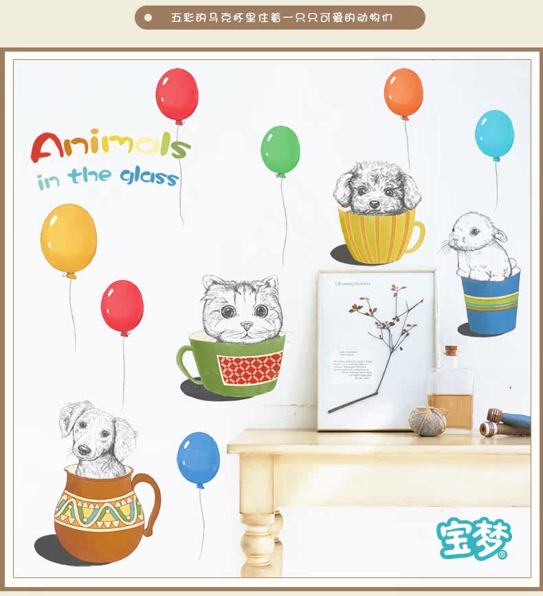 时尚客厅卧室气球墙贴纸可爱儿童房宝宝房文艺杯子动物装饰品贴画