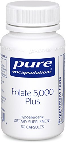 -. Feature : NATURALLY OCCURING FOLATE: Folate 5,000 Plus provides 5,000 mcg of folate as 5-methyltetrahydrofolate (5-MTHF), the universally metabolized and biologically active form of folate, combined with activated vitamin B12 and B6.* / CELLULAR HEALTH: Optimal levels of these B vitamins have been associated with cellular, cardiovascular, neurological and psychological health.* / METABOLIC SUPPORT: These vitamins also enhance healthy endothelial function and play a vital role in the metabolism of homocysteine. / PURE INGREDIENTS: Pure Encapsulations® manufactures a line of hypoallergenic, research-based dietary supplements. Products are meticulously formulated using pure ingredients designed to deliver predictable results for the benefit of all patients, even the most sensitive.* / FREE FROM: Pure Encapsulations products are free from wheat, gluten, egg, peanuts, magnesium stearate, hydrogenated fat, artificial sweeteners and colors, and other unnecessary excipients. Any product containing ingredients derived from allergens, such as soy, dairy or shellfish is clearly labeled. * These statements have not been evaluated by the Food and Drug Administration. This product is not intended to diagnose, treat, cure, or prevent any disease.
