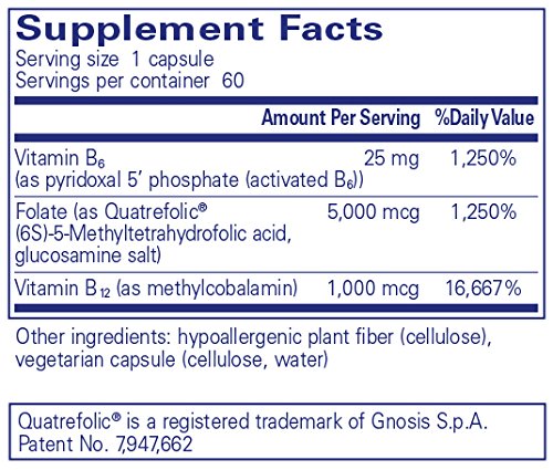 -. Title : Pure Encapsulations - Folate 5,000 Plus - Activated Folate, Vitamin B12 and B6 Combination - 60 Capsules
