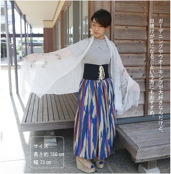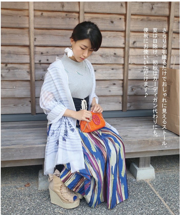 ★さらりと羽織るだけでおしゃれに見えるストール。夏は日除け、初秋はカーディガン代わりにも。便利にお使いいただけます♪