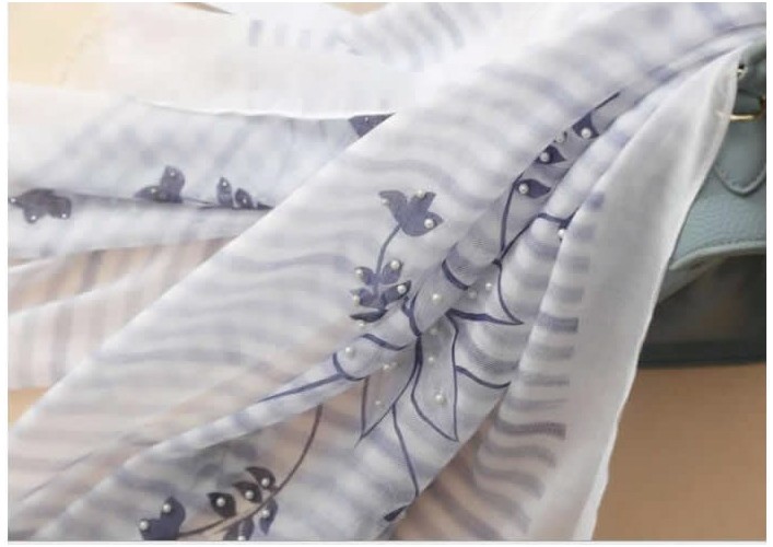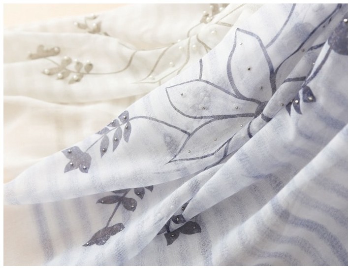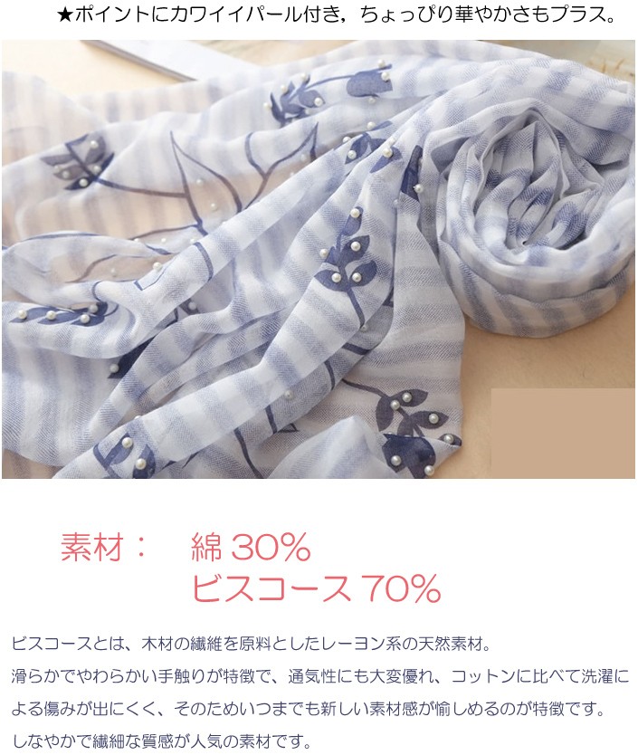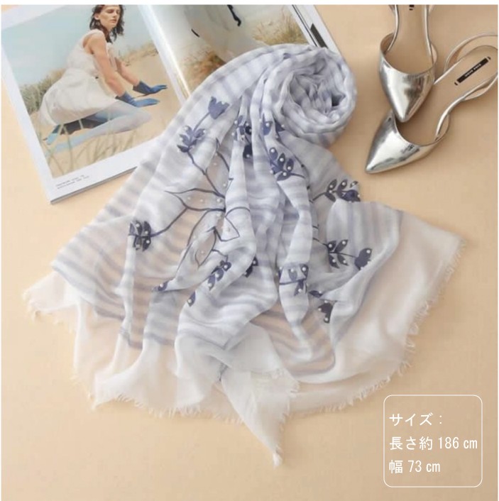 パールビーズりが付いた上品なロングストール ボーダー柄 2色