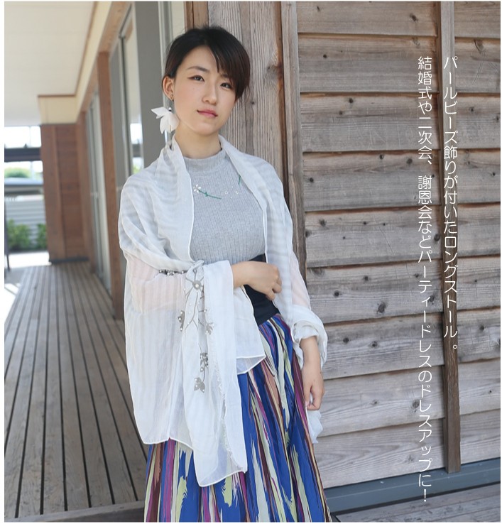 ★パールビーズ飾りが付いたロングストール 。 結婚式や二次会、謝恩会などパーティードレスのドレスアップに!