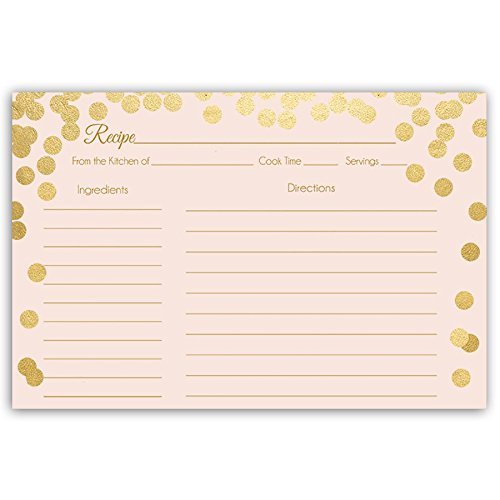 Recipe Cards, Double Sided with Lines, Size 4 x 6, Confetti, Pink and Gold, Blush, Bridal Shower, Champagne Brunch, Wedding, Housewarming, Gift, Brunch and Bubbly, Set of 24 Printed Cards