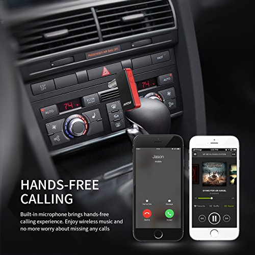 Mpow Bluetooth Receiver, Streambot Bluetooth Adapter & Hands-Free Car Kits, Mini Wireless Music Adapter for Home/Car Stereo Audio System,Black-Red