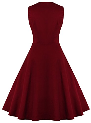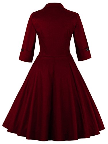 KILOLONE Women 50s Vintage Classic 3/4 Sleeve Bodycon Evening Bridesmaid Dress, Maroon/Wine, Medium