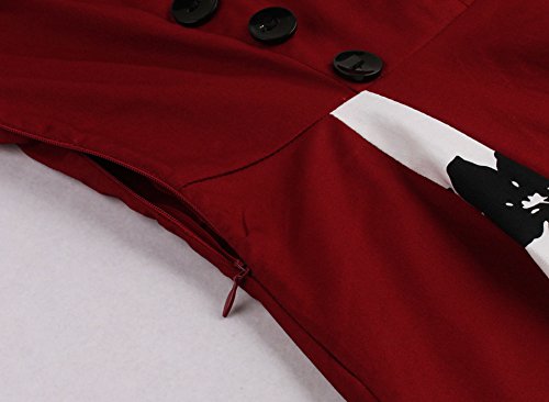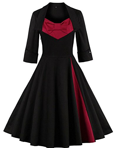KILOLONE Women 50s Vintage Classic 3/4 Sleeve Bodycon Evening Bridesmaid Dress, Black/Red, S