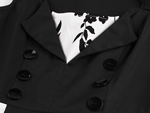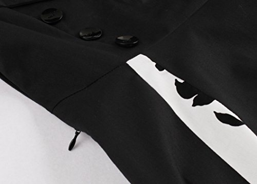 KILOLONE Women 50s Vintage Classic 3/4 Sleeve Bodycon Evening Bridesmaid Dress, Black/Floral, 4XL
