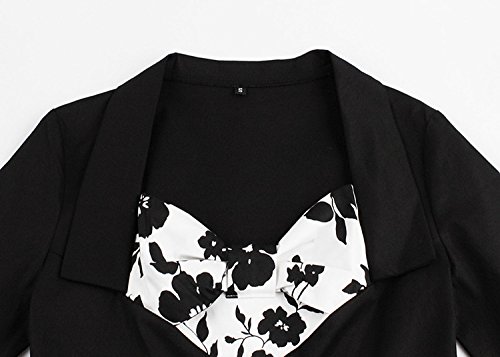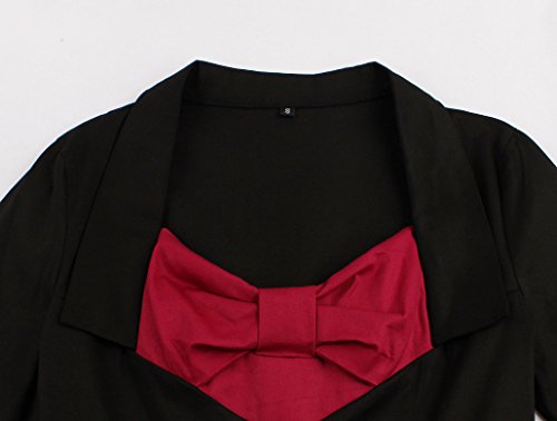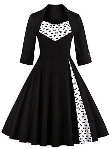KILOLONE Women 50s Vintage Classic 3/4 Sleeve Bodycon Evening Bridesmaid Dress, Black/Bow, Large