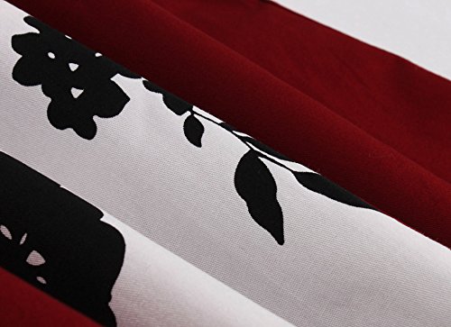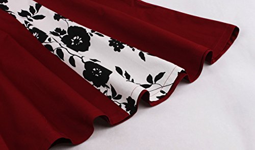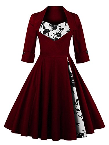 KILOLONE Women 50s Vintage Classic 3/4 Sleeve Bodycon Evening Bridesmaid Dress, Wine/Floral, 2XL