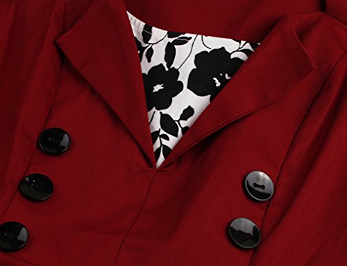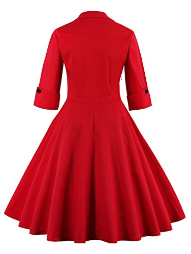KILOLONE Women 50s Vintage Classic 3/4 Sleeve Bodycon Evening Bridesmaid Dress, Red, XL