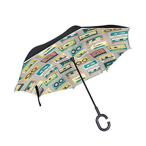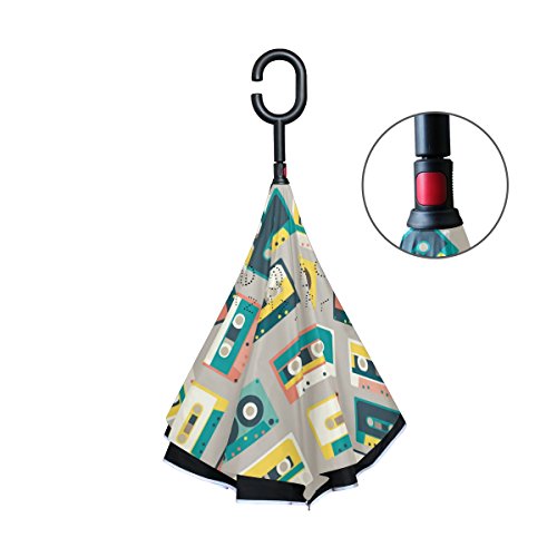 (ALIREA)/Accessories/Umbrellas/DIRECT FROM USA/ALIREA Retro Audio Tapes Pattern Double Layer Inverted Umbrella Reverse Umbrella for Car and Ou...